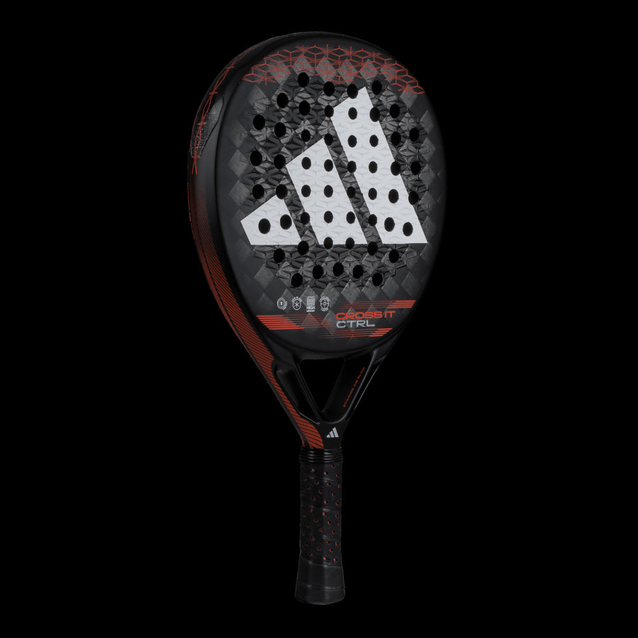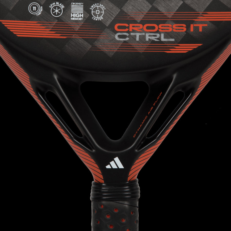 The CROSS IT CTRL is a racket designed for players who excel in handling and control. It features the Dynamic Air Flow technology, which optimizes air flow and reduces drag, enhancing racket speed and power generation. The racket is also equipped with Extra Power Grip, a longer grip that shifts the balance to the head, maximizing power. The combination of Carbon Aluminized 15K fiber and EVA High Memory rubber ensures rigidity and power, while Eleven 13 technology incorporates smaller diameter holes to improve durability.
