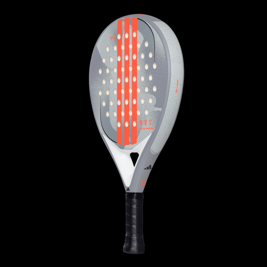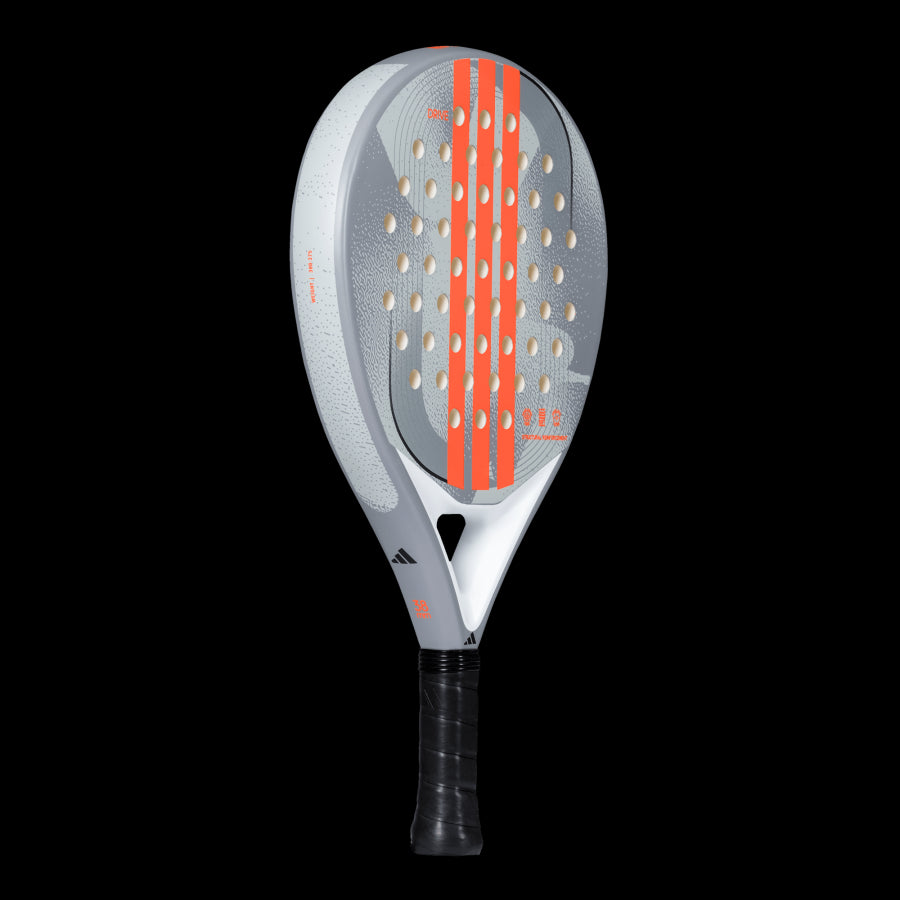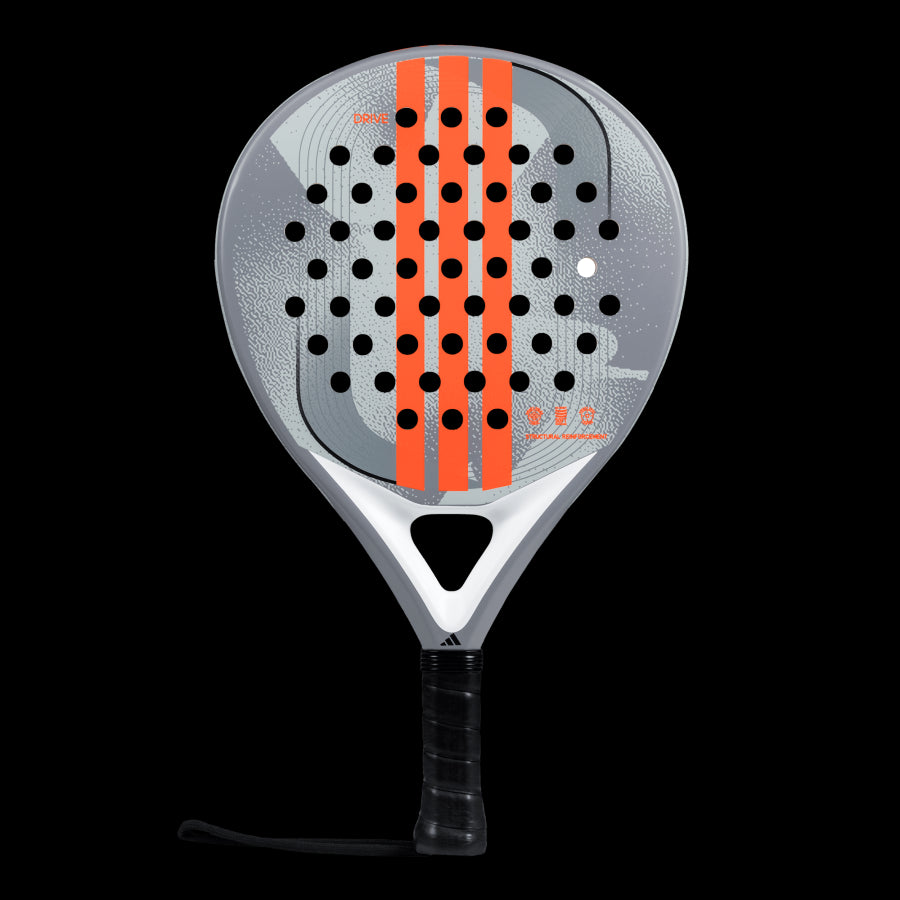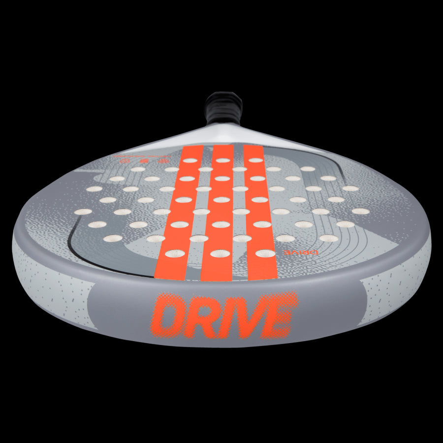 The ADIDAS DRIVE GREY 3.4 is the perfect racquet for newcomers to padel, offering a smooth blend of performance and comfort. Designed for players just discovering the sport, it features a fibreglass surface and EVA Soft Performance foam for excellent ball output and a comfortable feel during gameplay. Its round shape, with the weight concentrated near the grip, provides greater control for defensive shots, making it easier to manoeuvre. Structural Reinforcements around the perimeter improve torsion resistance, boosting durability, while the Smart Holes Lineal technology strengthens the striking surface, enhancing both performance and racquet lifespan.