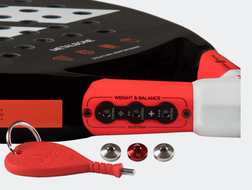 The Metalbone 3.2 is the most advanced padel racket you can grip. It features an array of technology to help elevate your game. Exclusive to the Metalbone range, the Octagonal Structure technology enhances rigidity, leading to more consistent shot-making. The surface incorporates the Spin Blade system, providing you with better control over your shots. You can also customize the weight of this racket with the Weight and Balance System, which allows you to add or remove up to 12 grams and adjust the balance to your preference. The combination of Aluminized Carbon and EVA Soft Performance rubber delivers a unique blend of power and comfort.