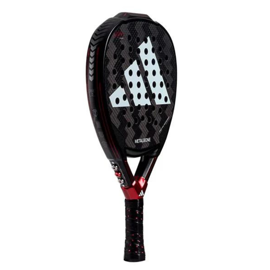 The Adidas Metalbone 3.3 racket, designed in collaboration with Alejandro Galán, combines advanced technologies and high-quality materials for optimal performance. The surface features Carbon Aluminized 2 TO 1, which provides substantial power and rigidity. The core utilizes EVA Soft Performance rubber for a comfortable yet powerful feel. The Octagonal Structure enhances rigidity and stability, while the Spin Blade technology adds effective spin to your shots. The racket also features the Weight & Balance System, allowing you to customize weight and balance with six adjustable screws.