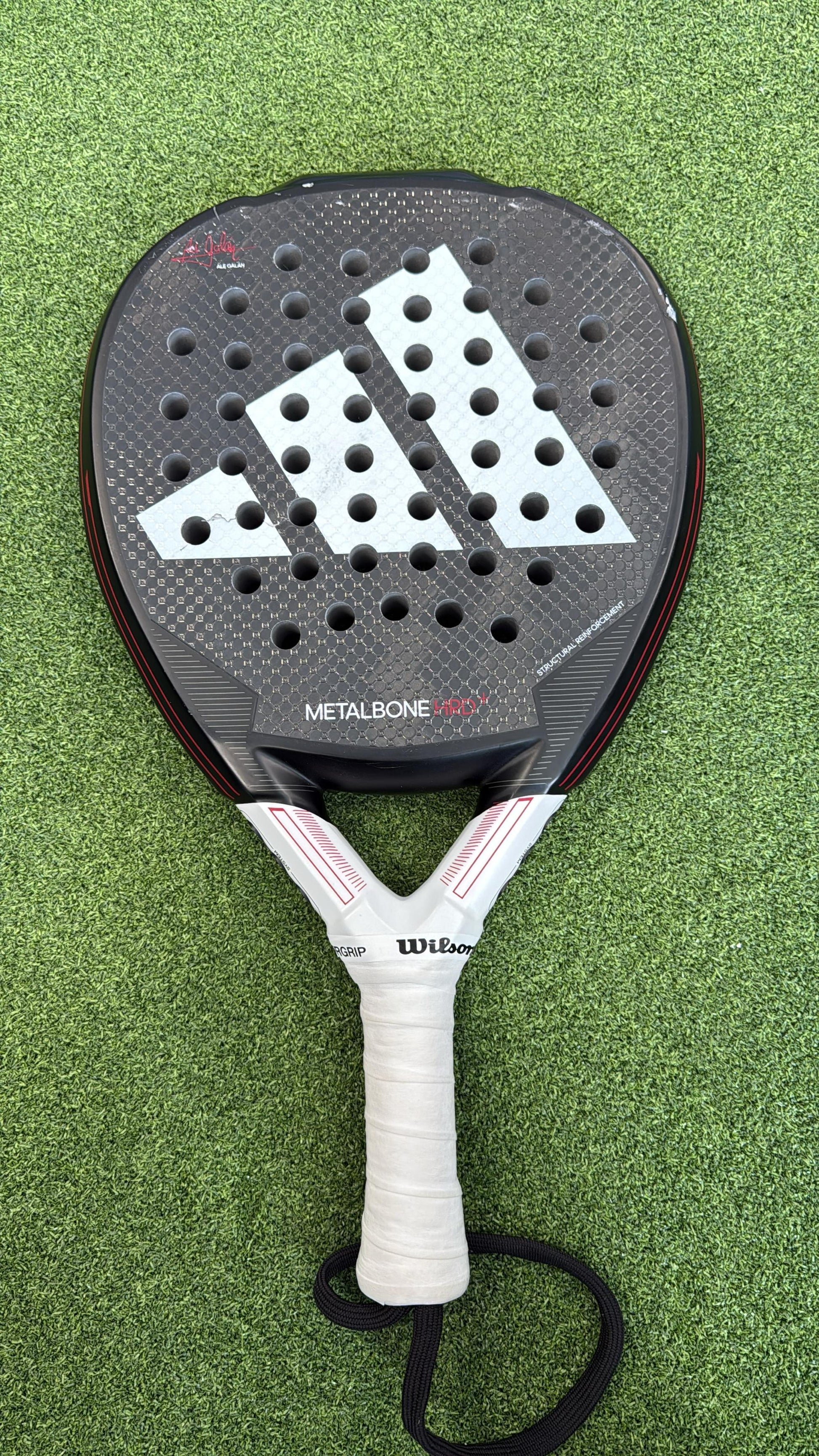 Adidas Metalbone HRD+ new padel racket from Ale Galán. It stands out for its incomparable power, thanks to the Carbon Aluminized 2 T0 1 surface and the High Memory rubber ensuring unparalleled power.