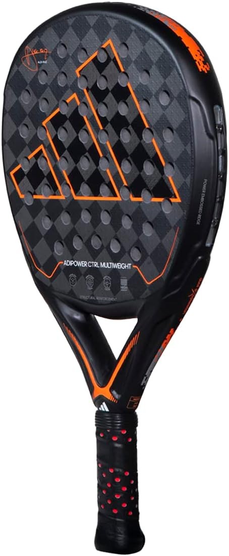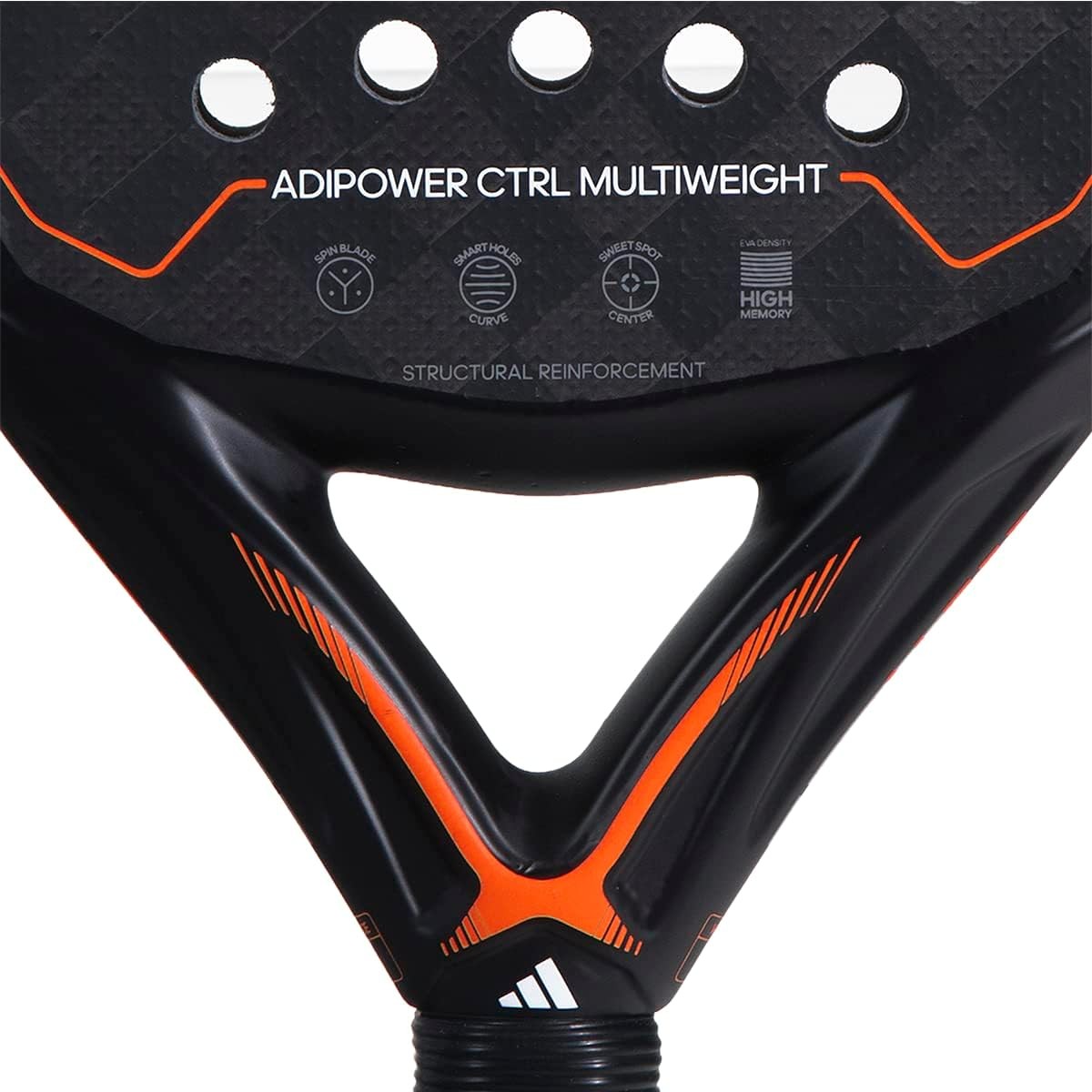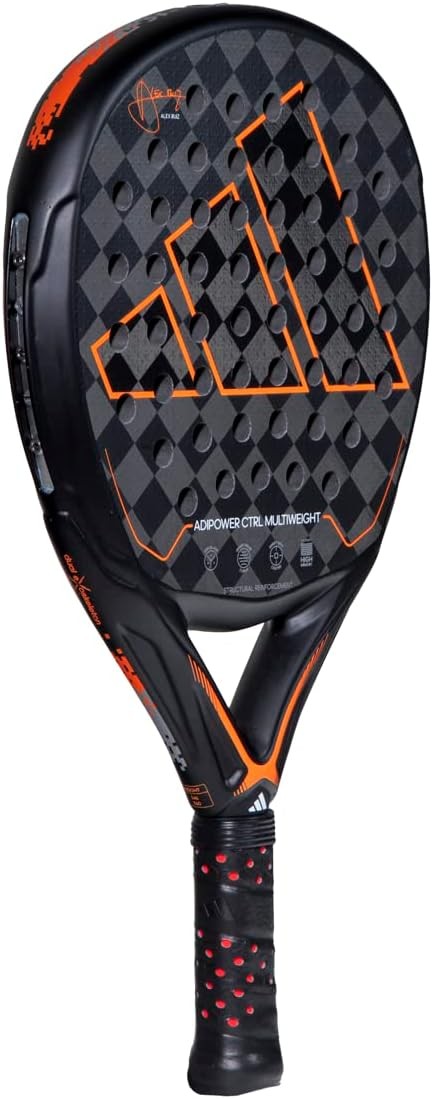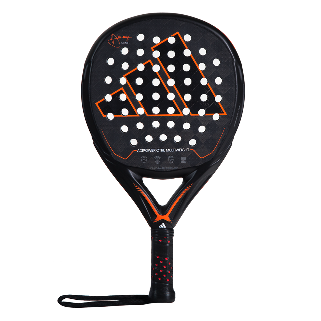 The adidas Adipower Multiweight Ctrl is an ideal racket for experienced and advanced padel players looking for optimal control. The racket blade has a round shape with the sweet spot in the middle, ensuring that you experience a lot of control in your shots. The Weight and Balance System allows you to adjust the weight as desired (+0-12 grams). The system consists of 6 removable screws. Depending on the number of screws you attach, the weight will be higher or lower with a variation of up to 12 grams. In addition, where the screws are placed also affects the balance of the racket. When there is more weight at the bottom, it creates a lower balance point and therefore more control. When the weight is more at the top, it creates a higher balance point and therefore more power. This allows you to adjust the racket to your needs before every match. The frame is made entirely of carbon, and the racket blade is made of Carbon Aluminized 15K. The core is made of EVA High Memory. These materials provide ultimate power to your shots. The structure on the racket blade allows you to generate more spin. The racket is ideal for defensive padel players.
