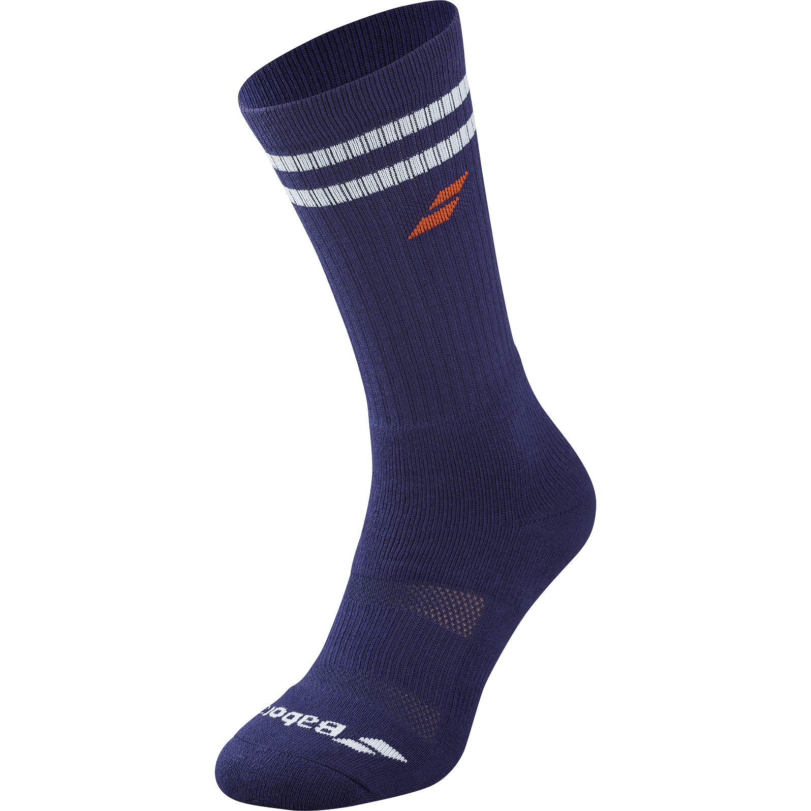 Discover the new Team Single Socks Thrill. Crafted mainly from cotton, these socks provide the comfort you need for the specific movements of tennis. Featuring a vintage design, the Team Single Socks Thrill serve as a stylish accessory, perfect for wearing both on the tennis court and in everyday life