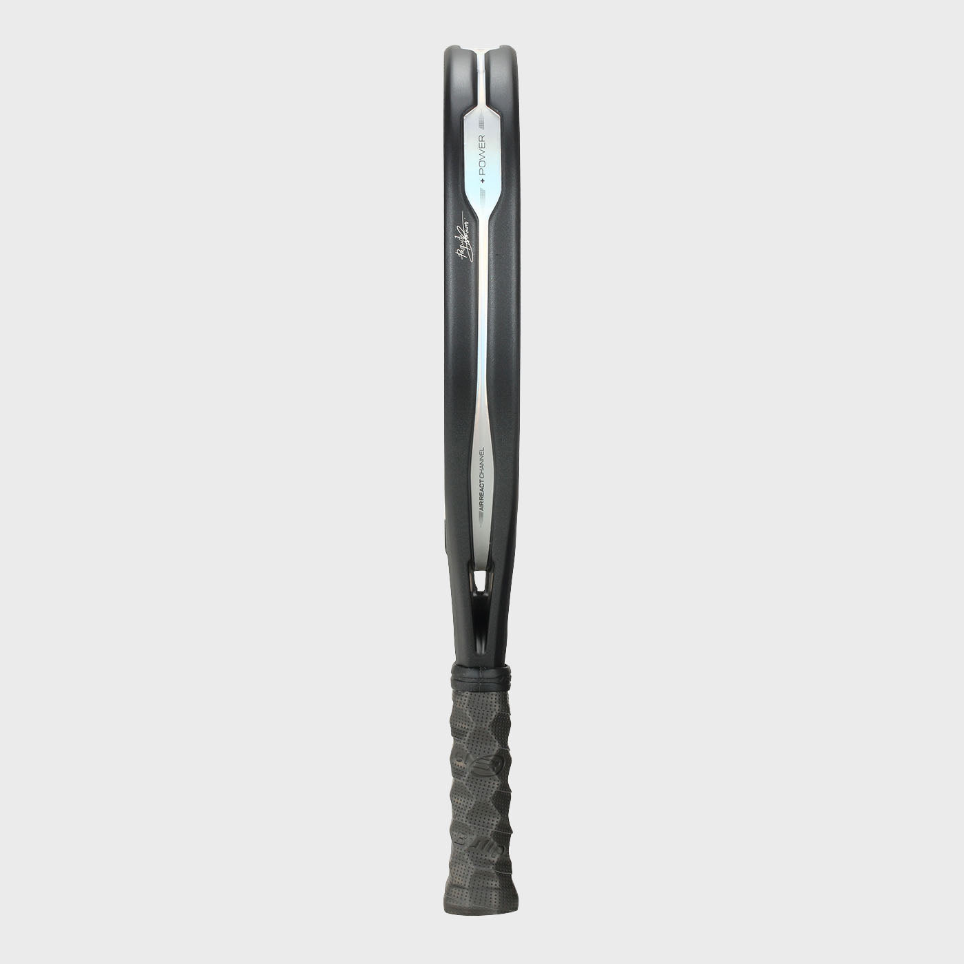 HACK 04 Hybrid , a racket designed with Total Channel technology and a triple bridge at the heart. This hybrid format makes it the ideal choice for players looking to dominate the counterattack, combining control with power. With the HACK 04 Hybrid , you'll unleash a storm with every move, taking full advantage of its responsiveness. Technologies : Total Channel, Tricore , Air React Channel, Ease Vibe, Custom weight, Smart Holes, 3D Grain, Hesacore , Vibradrive , Aluminized A18K, Multieva , Carbon Tube.
