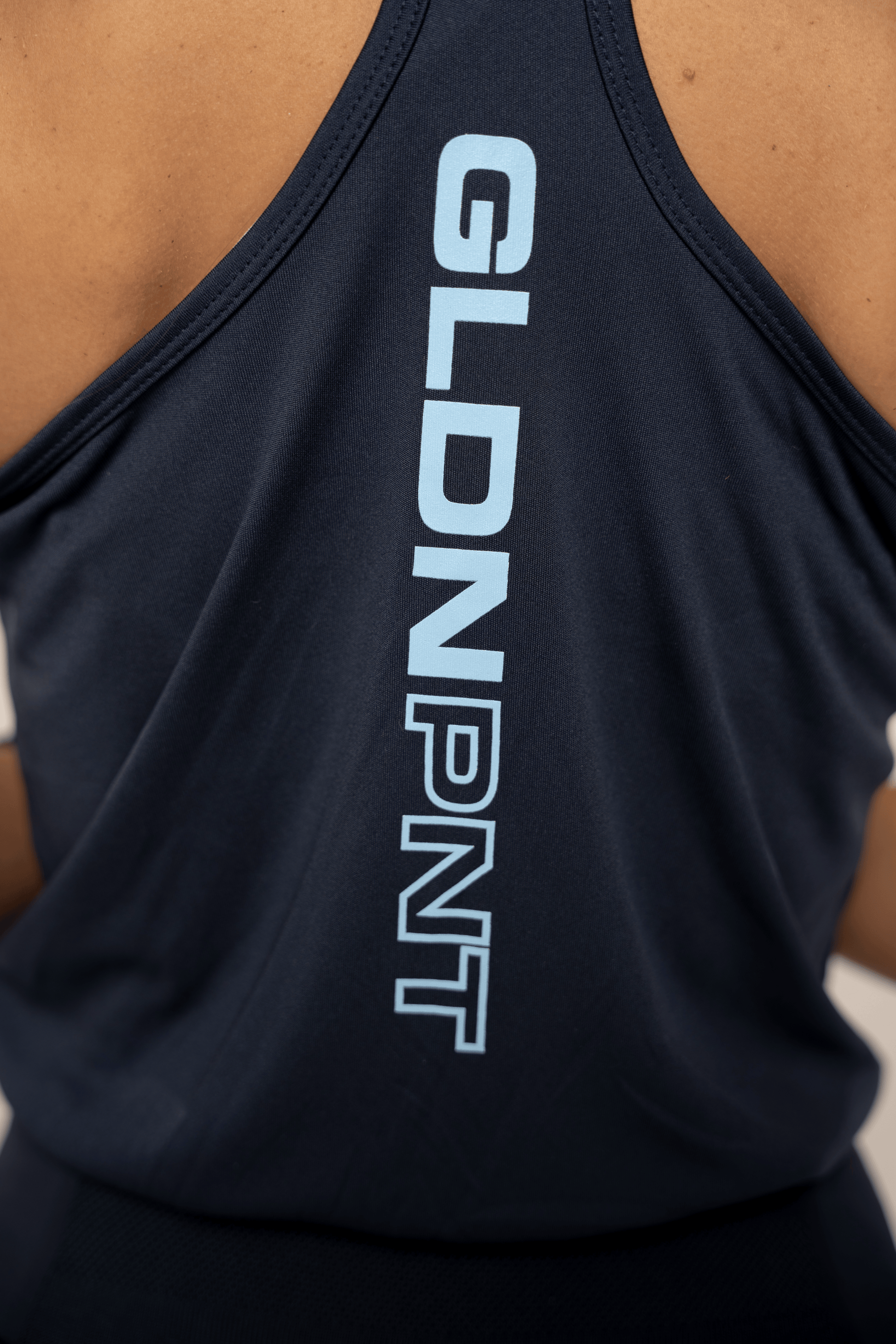 This 100% polyester tank is designed to keep you cool and dry with moisture-wicking fabric and offers UPF 40+ protection from the sun. Its racerback style showcases a bold "G" graphic on the front and the GLDN PNT logo on the back, perfect for your turn on the court.