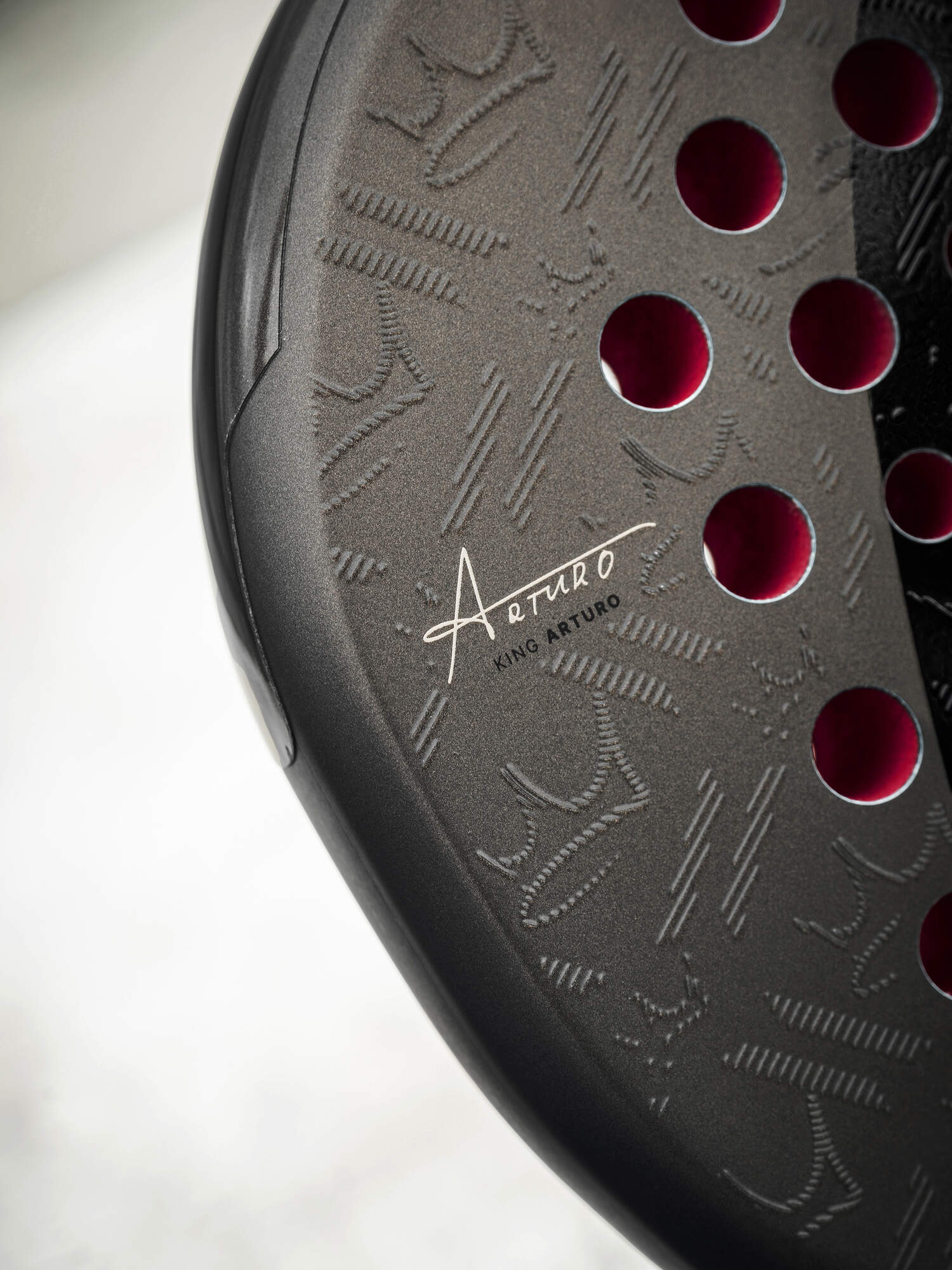Feel the power like ‘King Arturo’. Created in collaboration with world number one Arturo Coello, the COELLO PRO 2026 PADEL RACQUET has been refreshed with a new, exclusive and elegant design featuring personal touches such as his crown logo and signature. While it is 5 grams lighter than the previous generation, this is still a heavy and powerful racquet for tournament and expert players who are looking for power and stability when moving forward to the net to attack.