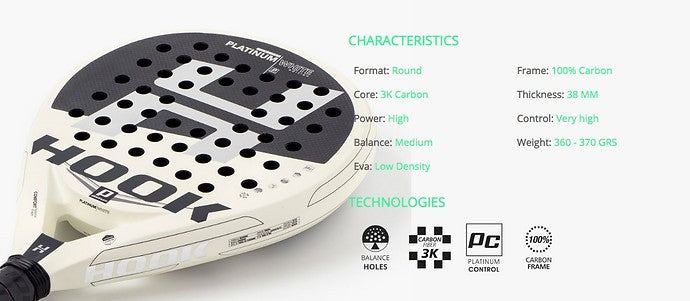 Hook PLATINUM WHITE - The control…Being a control racket, due to its soft rubber, its configuration allows to improve the ball output without losing power.