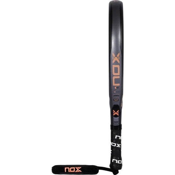 The Nox MJ10 Majo S Alayeto is an ideal racket for experienced and advanced players with a powerful and aggressive game. The blade has a drop shape, which has a good balance between power and control.The core features Multilayered Black Eva. In combination with the 12K Carbon racket blade, this provides ideal energy distribution for both slower and powerful shots. The anti-vibration system captures vibrations, providing greater comfort and less risk of injury. The Smartstrap safety cord system allows you to easily replace the cord. The rough finish on the racket blade allows you to add more effect to the ball.