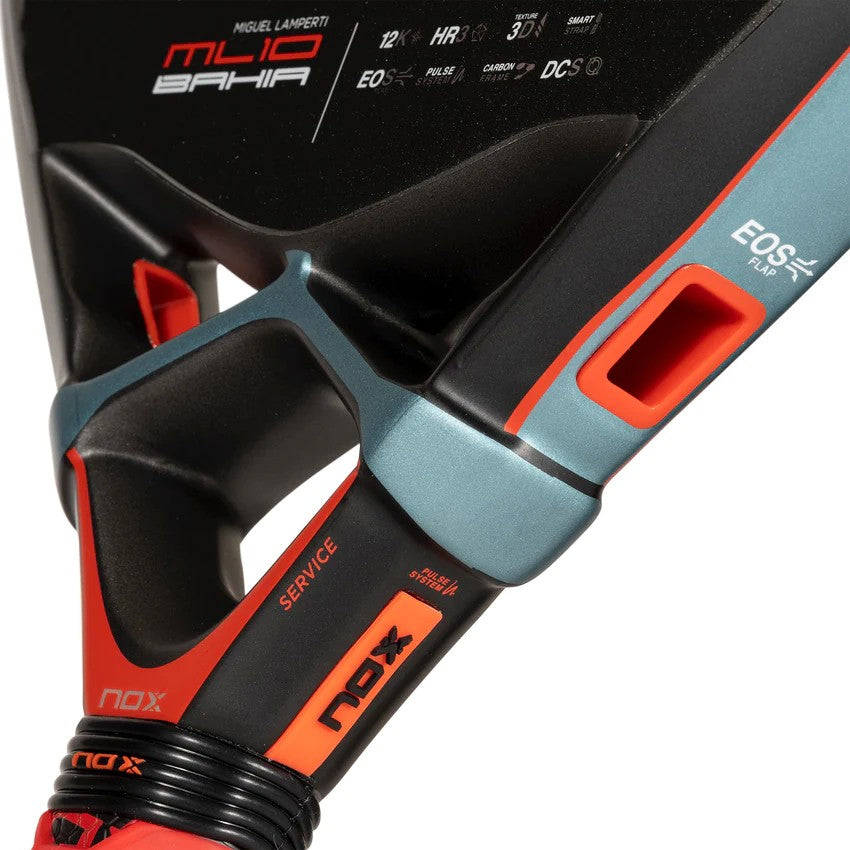 The edges of the profiles have been profiled to increase aerodynamics, the grip has been lengthened to facilitate grip, but what stands out most is the incorporation of EOS Flap technology, side perforations designed to increase the manageability of the racket and distribute the weight distribution so that you have a fast and lethal racket in your hands.
