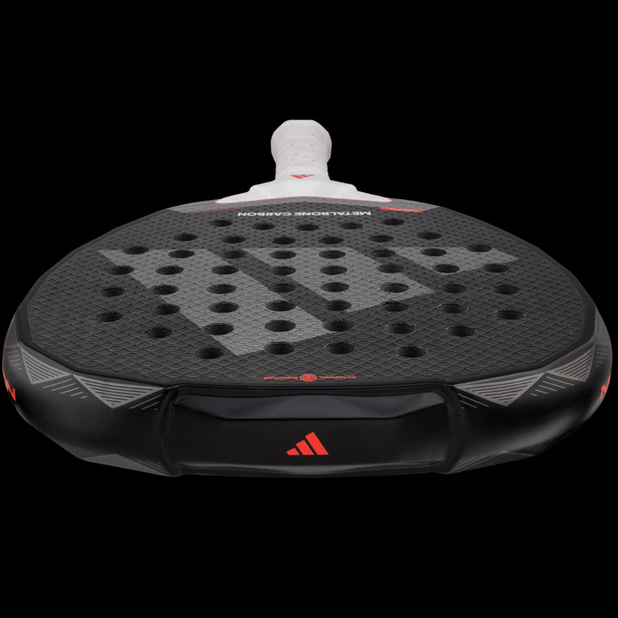 The Metalbone Carbon 3.4 introduces two cutting-edge adidas technologies to the Metalbone range for the 2025 collection. These include the Power Extra Grip, an extended racquet handle that enhances inertia during shots, and the Low Poly polyhedral design in the core and frame, which increases rigidity—both essential for offensive play. In addition to these innovations, the Octagonal Structure, a tubular carbon frame, reduces torsion and improves shot accuracy. The combination of EVA Soft Performance rubber and Carbon 6K fibre provides a perfect balance, while the Spin Blade Decal relief ensures precise spin effects.