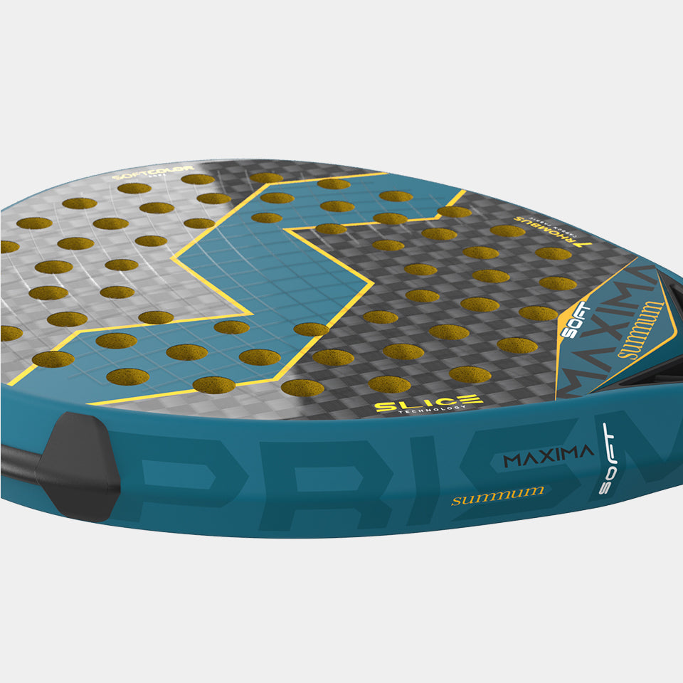 The Maxima Summum Prisma Soft is an advanced-level padel racket with a medium balance that stands out for its elegant design, aerodynamics, and on-court performance.