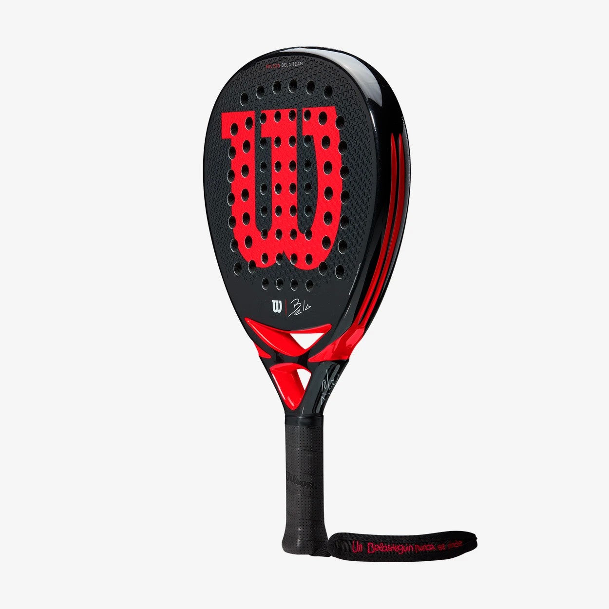 The most playable paddle in Wilson's all-new Fernando Belasteguin collection, the Bela Team aims to upgrade your game and look the part while doing so. Top features include a woven fiberglass material for extra stability, an arrow pattern surface texture for increased spin and a slick design highlighted by infrared accents and Bela's signature. An inspirational story of overcoming injury and all odds to become one of the greatest players of all time, Bela seeks to inspire the untapped legend within you. Paddle includes wrist cord that features "A Belasteguin Never Gives Up" in his daughter's Spanish handwriting, a source of inspiration for Bela when he encountered his most challenging obstacles both on and off the court.
